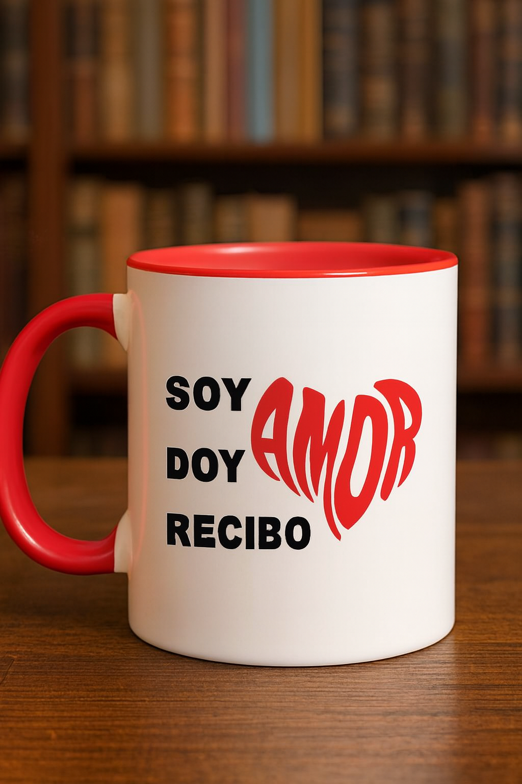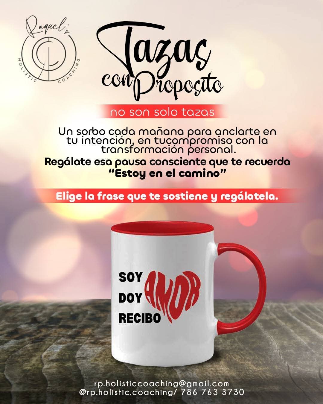 Ceramic Mug – Motivational Phrase / Taza de Ceramica – Frase motivacional «Soy, doy, recibo AMOR «